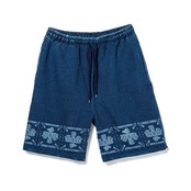 12.2オンスのインディゴスウェット素材を使用し、レーザー加工を施したスウェットショートパンツ。紋章を彷彿とさせるトーテムグラフィックを落とし込んだ抜群の存在感を放つアイテム。しっかりとした生地でも柔らかでストレスを感じず、着込むほど体に馴染むエイジングも魅力です。
