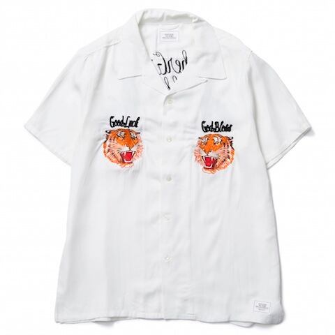 ビンテージのボーリングシャツを彷彿させるレーヨン生地にスカジャンライクな刺繍を施した、存在感抜群な半袖シャツ。